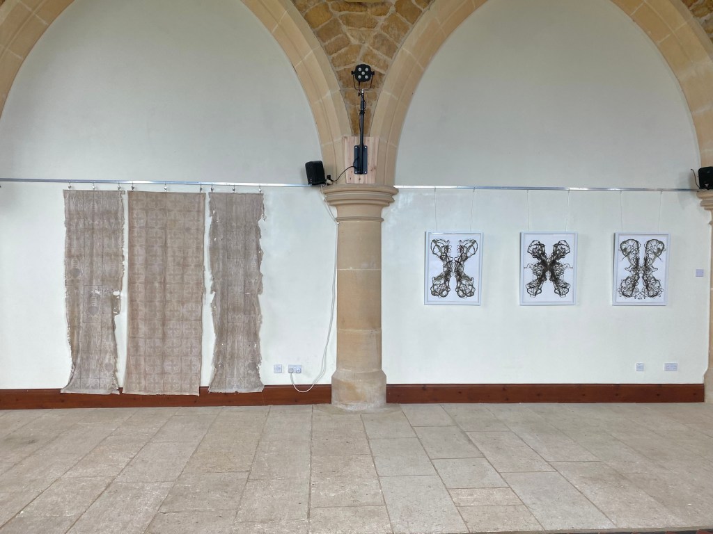 The work on show examined and enacted these ideas through video, performance, drawing, prints and textiles that incorporate both human and plant body matter. Drawing from pre-modern attitudes towards plants which were built on respect, reciprocity and care, the work aims to honour the debt owed and give thanks to the nettle through acts of ritual and relic.